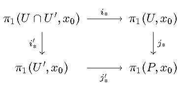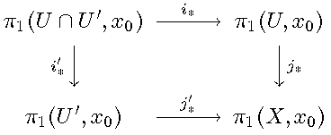 | Jede Schleife in X lässt sich bis auf punktierte Homotopie als Produkt von Schleifen schreiben, die jeweils ganz in U oder in U' liegen. |
