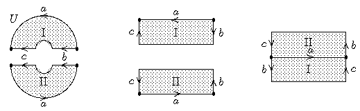 Beweis: Wir können annehmen, das das Quadrat mit den Ecken ((i-1)/k,(j-1)/k), (i/k,(j-1)/k), ((i-1)/k,j/k), (i/k,j/k) ganz in H-1(U) liegt. (Ansonsten liegt es ganz in H-1(U'), und der Beweis ist analog.) Insbesondere liegen die Ecken in H-1(U) und demnach auch die τ-Wege zu den Ecken. Wir sehen also, dass die Schleifen fi,j-1o, fijo, gi-1,jo und gijo alle in U liegen. Die Produkte der Schleifen fi,j-1ogijo und gi-1,jofijo sind homotop in U, wie die Einschränkung von H auf dieses Quadrat zeigt. Also ist γ(fi,j-1o) γ(gijo) = γ(gi-1,jo) γ(fijo). Damit ist die Behauptung B bewiesen.